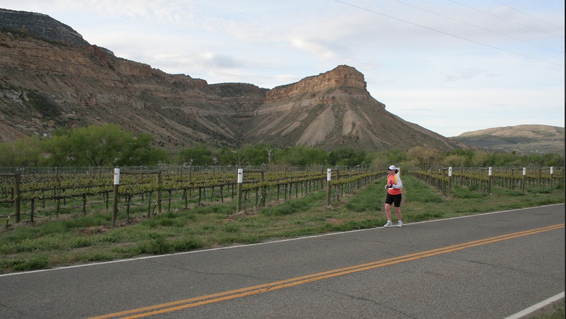 Miles 1-4 were great. I heard The Bird and the Worm by Owl City around mile 3 and was literally bopping my head back and forth while running. I'm sure I looked like an idiot, but I loved it. The weather was great, and for those who have ever been to Palisade, we ran by 14 different wineries with the Grand Mesa and Mount Garfield as our backdrop. I don't know how you can get much more beautiful than that.